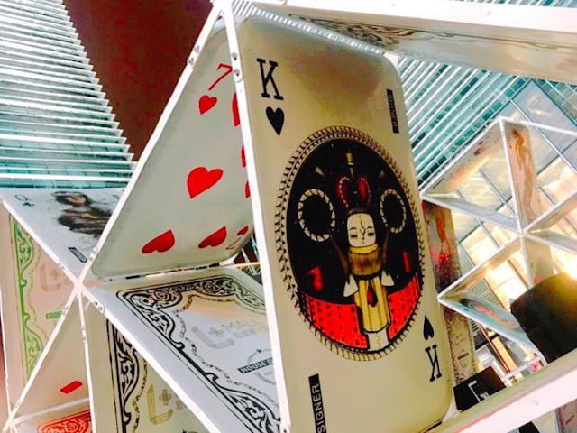 剛開幕沒多久在商城路地鐵站的LG+Mall陸家嘴中心,被辦公大樓包圍的戶外銀河場,放置一件來自德國及以色列藝術家共同創作的大型音樂燈光藝術作品「紙牌屋」House of Cards。靈感皆來自於藝術家的童年回憶!